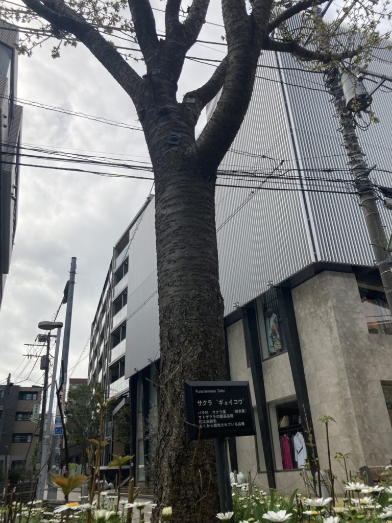 無印良品の前にある目立つ桜の木は近年剪定が行われて以前よりはちょっとさっぱりしています(右図)。